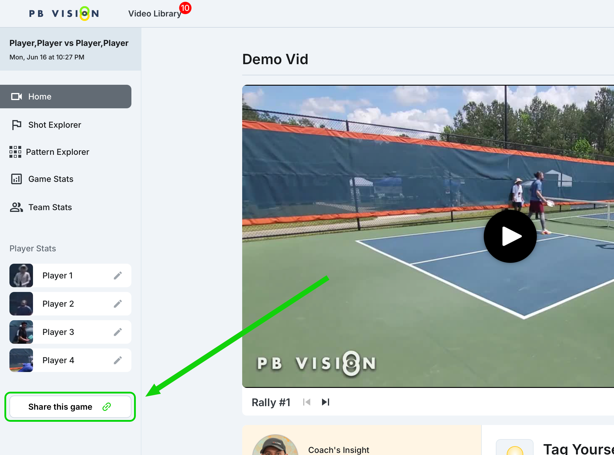 • Share your analyzed games with others so they can see the value of PB Vision in action