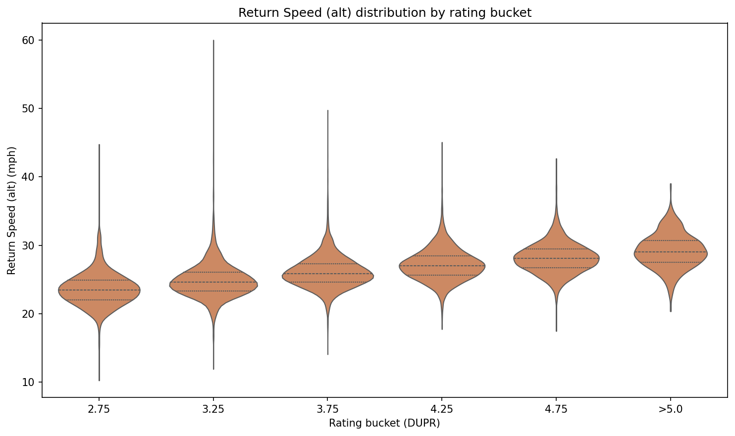 We measure: Return quality (combines depth, speed, and placement into a single score), return fault rate, and how weak the opponent’s third shot response is.