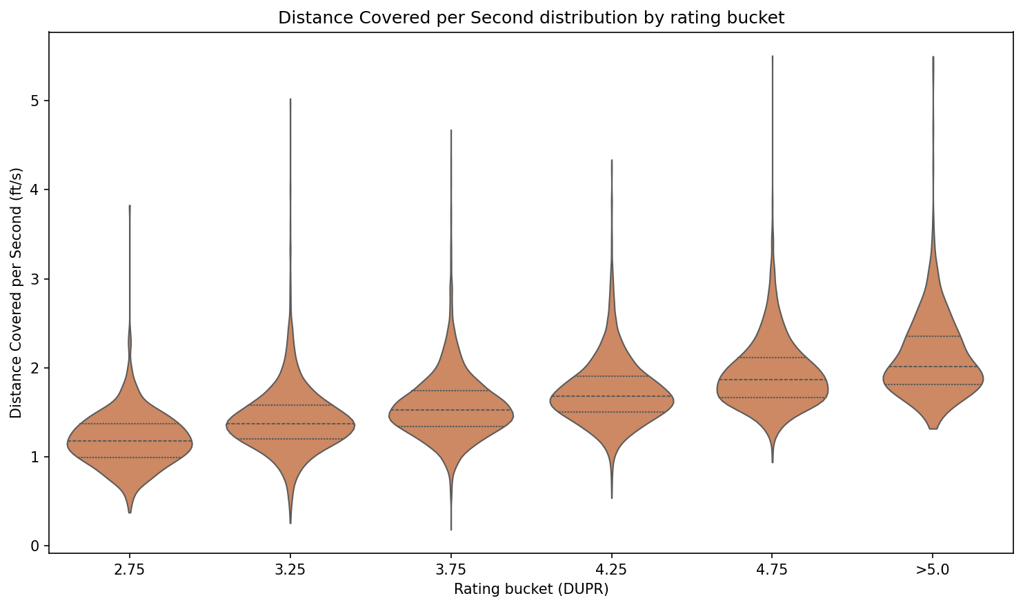 We measure: Court coverage speed, how quickly you reach the kitchen line (on both serve and return), drive speed, and efficient pre-shot positioning (less scrambling before shots).